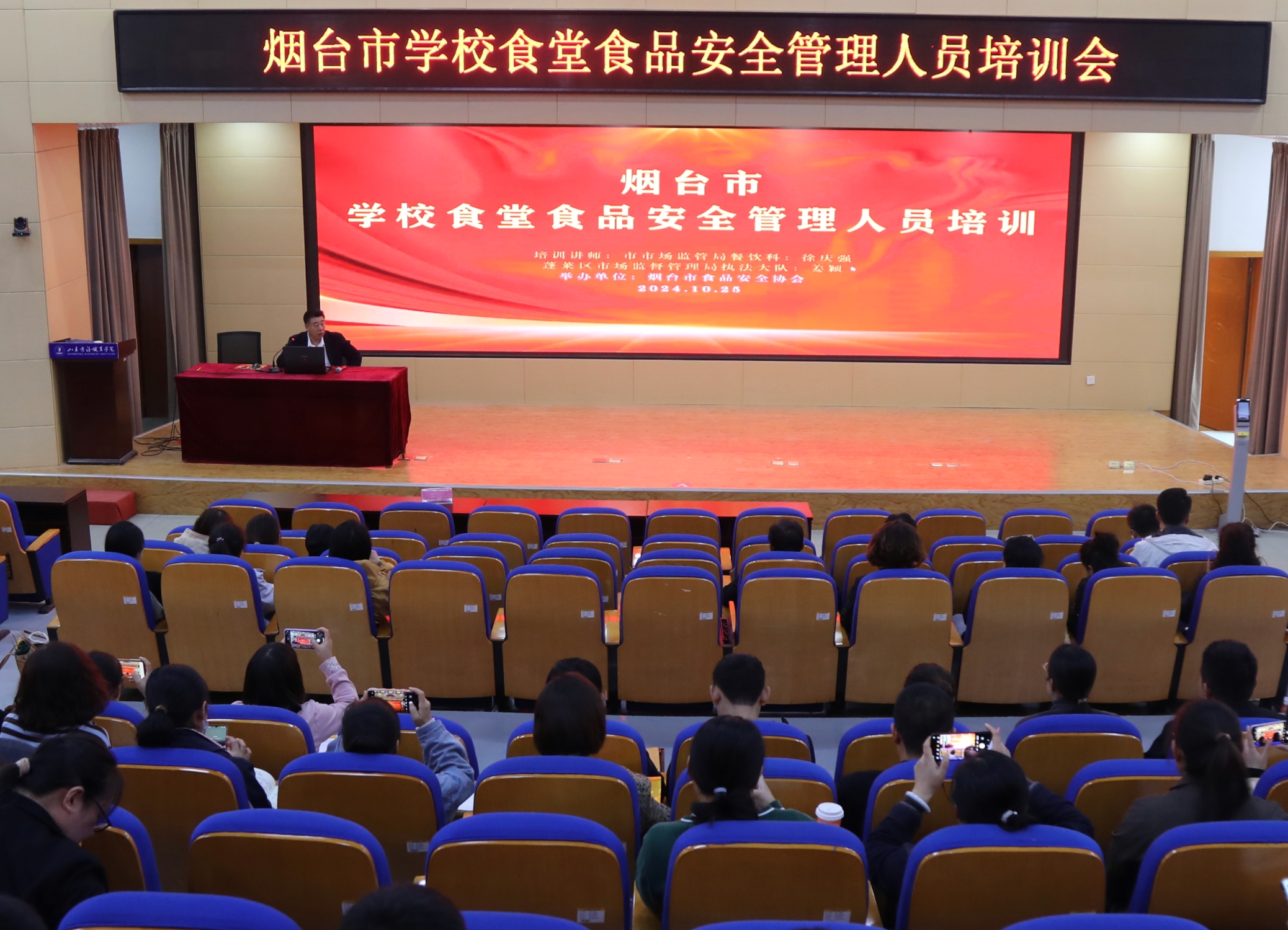本站讯 10月25日,由烟台市食品安全协会举办,我校承办的烟台市学校食堂食品安全管理人员培训会在我校党性教育基地召开。全市各级各类学校食堂管理工作人员共计200余人参加培训。