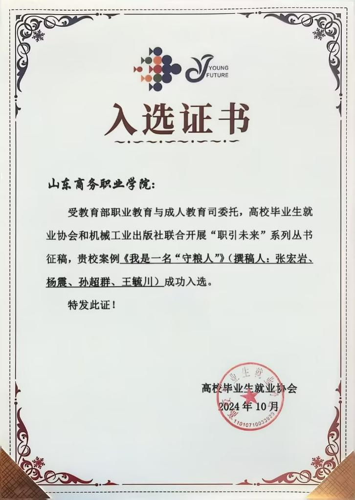 本站讯 近日,高校毕业生就业协会公布了教育部《职引未来》首批拟入选职教案例,我校学生王毓川的成长故事—《我是一名“守粮人”(2013届粮油储藏与检测技术专业毕业生王毓川)》,作为全国唯一入选的粮食类专业案例,在全国近400份申报案例中脱颖而出,成功入选《职引未来》首批百强职教案例。这一荣誉不仅是对王毓川个人努力和职业成就的肯定,也是对学校职业教育成果的高度认可。