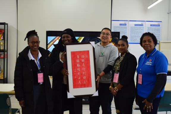 本站讯 近日,我校艺术设计学院迎来了一场别开生面的国际交流活动。来自特立尼达和多巴哥(简称特多)的四位教师朋友远道而来,与艺术设计学院的师生共同开启了一段跨越国界的非遗技艺交流之旅。