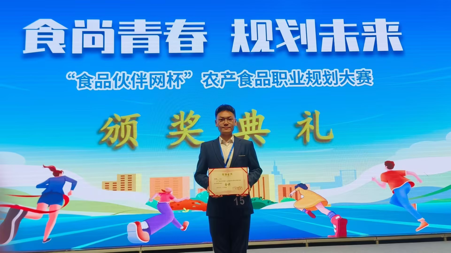 本站讯 11月16日,由全国农产食品行业产教融合共同体主办的“食品伙伴网杯”农产食品职业规划大赛在山东济南落下帷幕。我校粮油食品学院学生张硕在比赛中表现出色,以总分第一名的成绩荣获金奖,指导老师获评优秀指导教师,为我校赢得了荣誉。