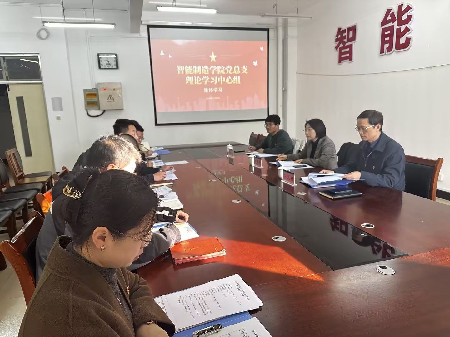本站讯 12月4日,智能制造学院党总支在实训中心B204会议室召开12月份党总支理论学习中心组学习会议。学校副校长于邢香列席旁听并点评。学校列席旁听工作组成员王九福、张志敏列席会议。智能制造学院班子成员、支部委员参加会议,会议由党总支书记时登华主持。