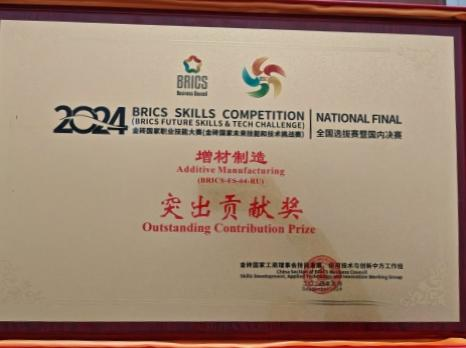 2024年金砖国家职业技能大赛中,我校智能制造学院师生在“人工智能机器人系统集成及应用”“增材制造”两个赛项中,凭借出色的专业技能和团队协作能力,成功斩获两项一等奖,学校获评“突出贡献单位”。