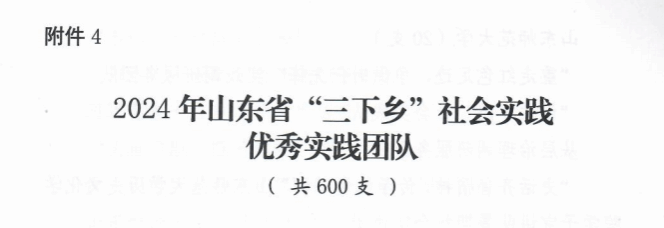 本站讯 近日,中共山东省委宣传部、山东省教育厅、共青团山东省委、山东省学生联合会发布《关于“调研山东”—2024年山东省大中专学生志愿者暑期“三下乡”社会实践活动的通报》,我校团委荣获山东省“三下乡”社会实践优秀组织单位,6名学生获评优秀学生、4名教师获评优秀指导教师、2支团队获评优秀实践团队、1个项目获评特色品牌项目。