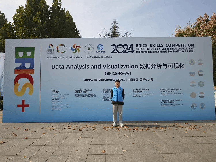 本站讯 近日,我校信息工程学院参赛选手郑庆儒凭借扎实的专业技能和出色的发挥,荣获 2024 金砖国家职业技能大赛数据分析与可视化赛项国际总决赛三等奖。