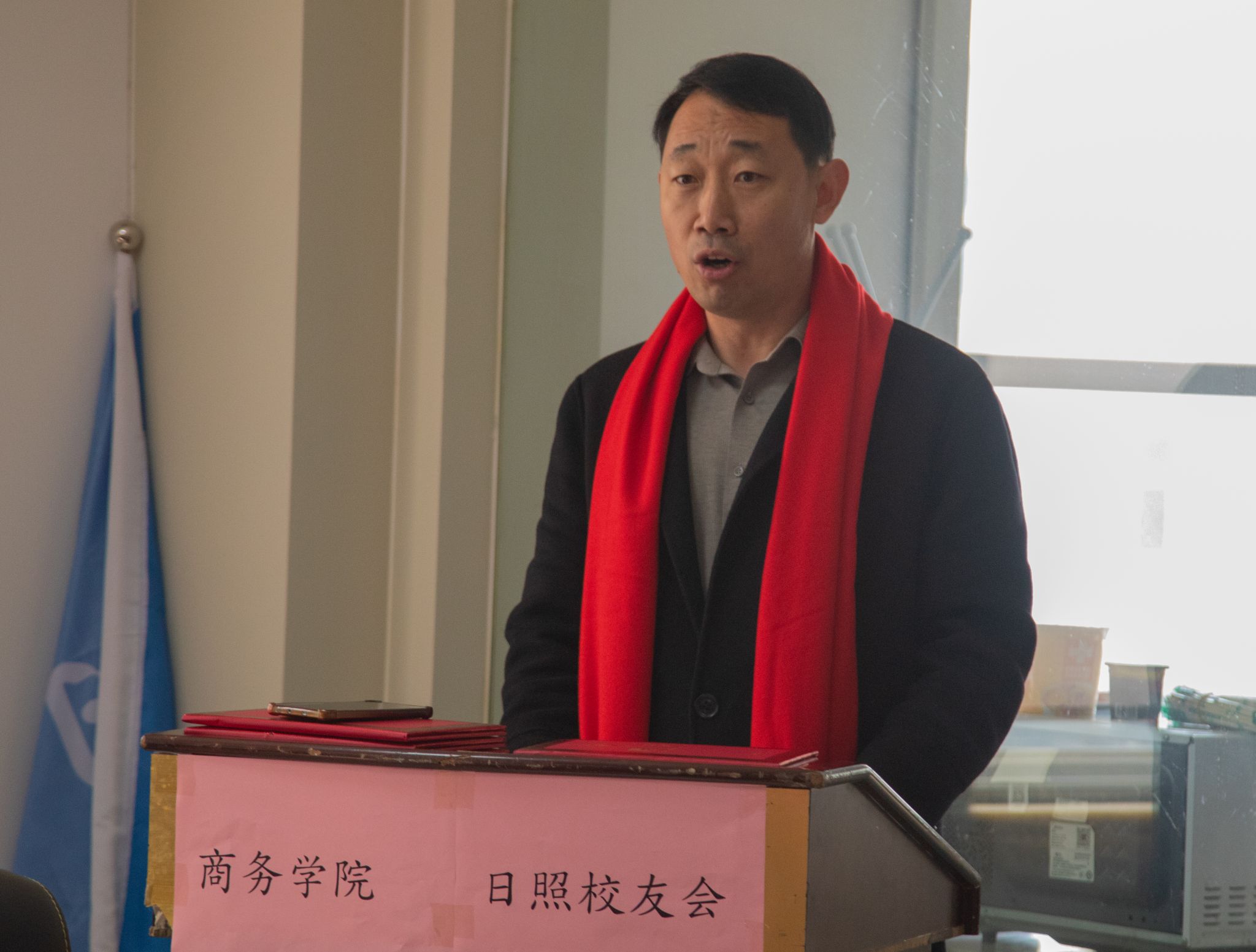 张越为日照校友会授牌、授旗。
