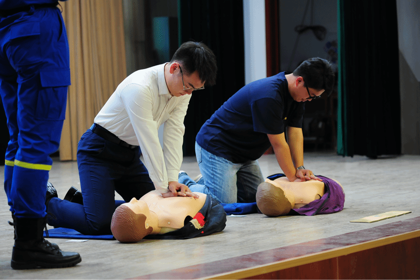 理论是基础,实践是关键。在实操环节中,蓝天救援队的老师们分组指导学生利用模拟人进行心肺复苏演练。从环境安全评估到按压深度、频率的精准把控,从开放气道的手法到人工呼吸的节奏,每一个动作都要求学生们反复练习、规范操作。培训现场,讲师们全程“手把手”指导,逐一纠正细节错误,确保每位学生都能熟练掌握操作要领。