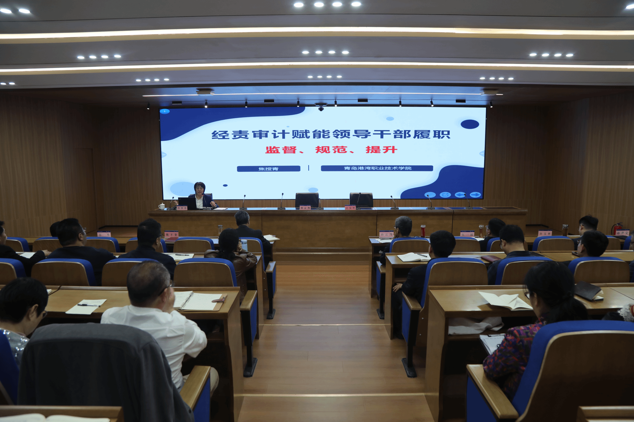 本站讯 为了提高部门负责同志履行经济责任的意识和能力,防范化解可能的风险隐患,助推学校治理体系和治理能力现代化,4月16日,我校在学习中心举办2025年经济责任审计专题辅导报告会,青岛港湾职业技术学院审计处副处长焦授青应邀授课。报告会由党委副书记、校长王发明主持,校领导、各部门主要负责同志、相关部门干部职工参加了会议。