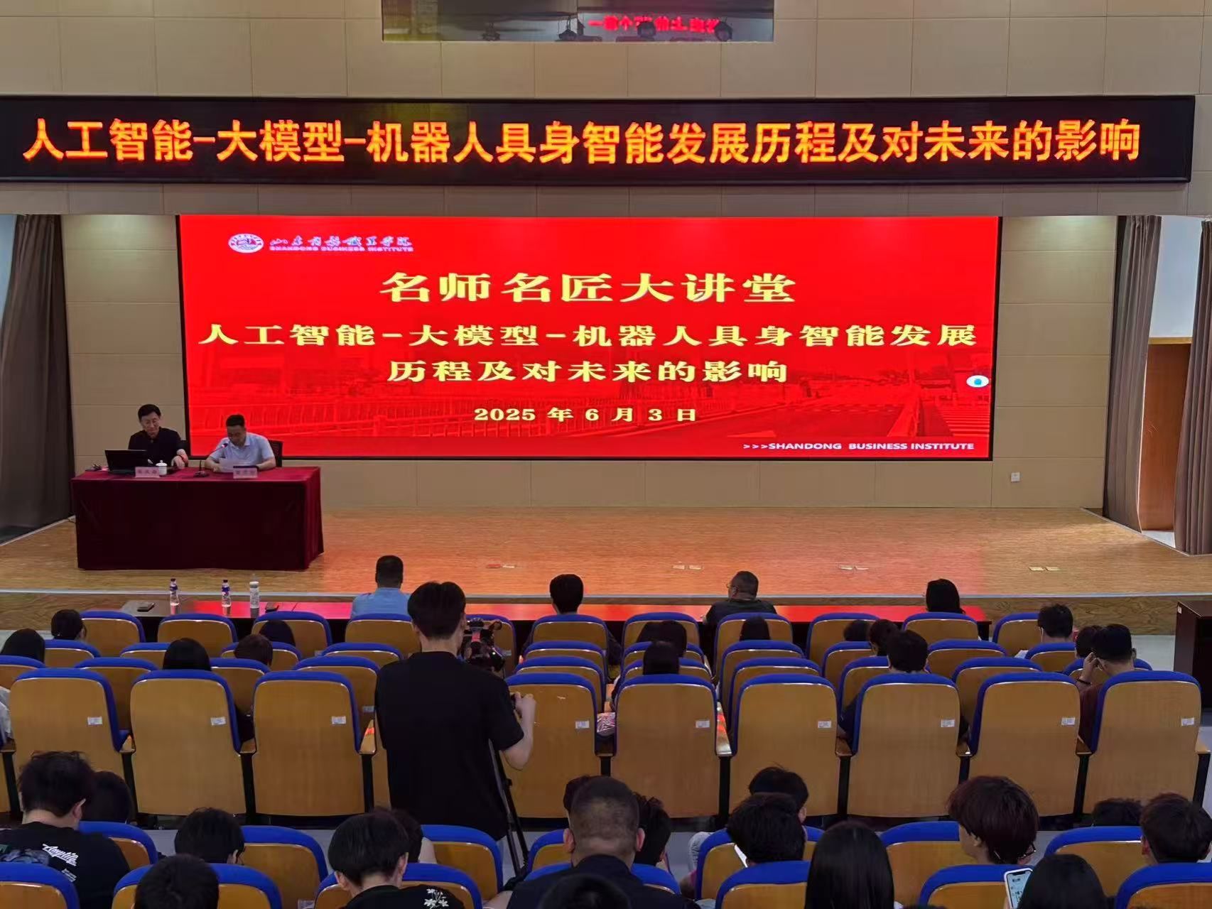 本站讯 在人工智能技术深刻重塑全球产业格局的浪潮中,以建校50周年为契机,6月3日下午,科研处联合智能制造学院特邀山东大学服务机器人研究中心教授、博士生导师、国家重点研发计划项目首席科学家周风余在学校党性教育基地开展“人工智能—大模型—机器人具身智能发展历程及对未来的影响”学术讲座。此次学术活动旨在通过高水平学术交流,提升自然科学领域研究水平,为校庆注入创新活力与学术底蕴。学术报告会由智能制造学院院长魏彦波主持,全校师生300余人参加。