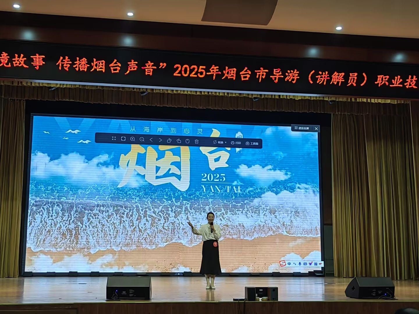本站讯 近日,2025年烟台市导游(讲解员)职业技能竞赛业余组决赛在紧张激烈的角逐中圆满落幕。来自我校文化旅游学院的李美麒同学,凭借扎实的专业基础和出色的表现,从全市30余名决赛选手中脱颖而出,荣获全市第三名及大赛一等奖,为学校再添光彩。