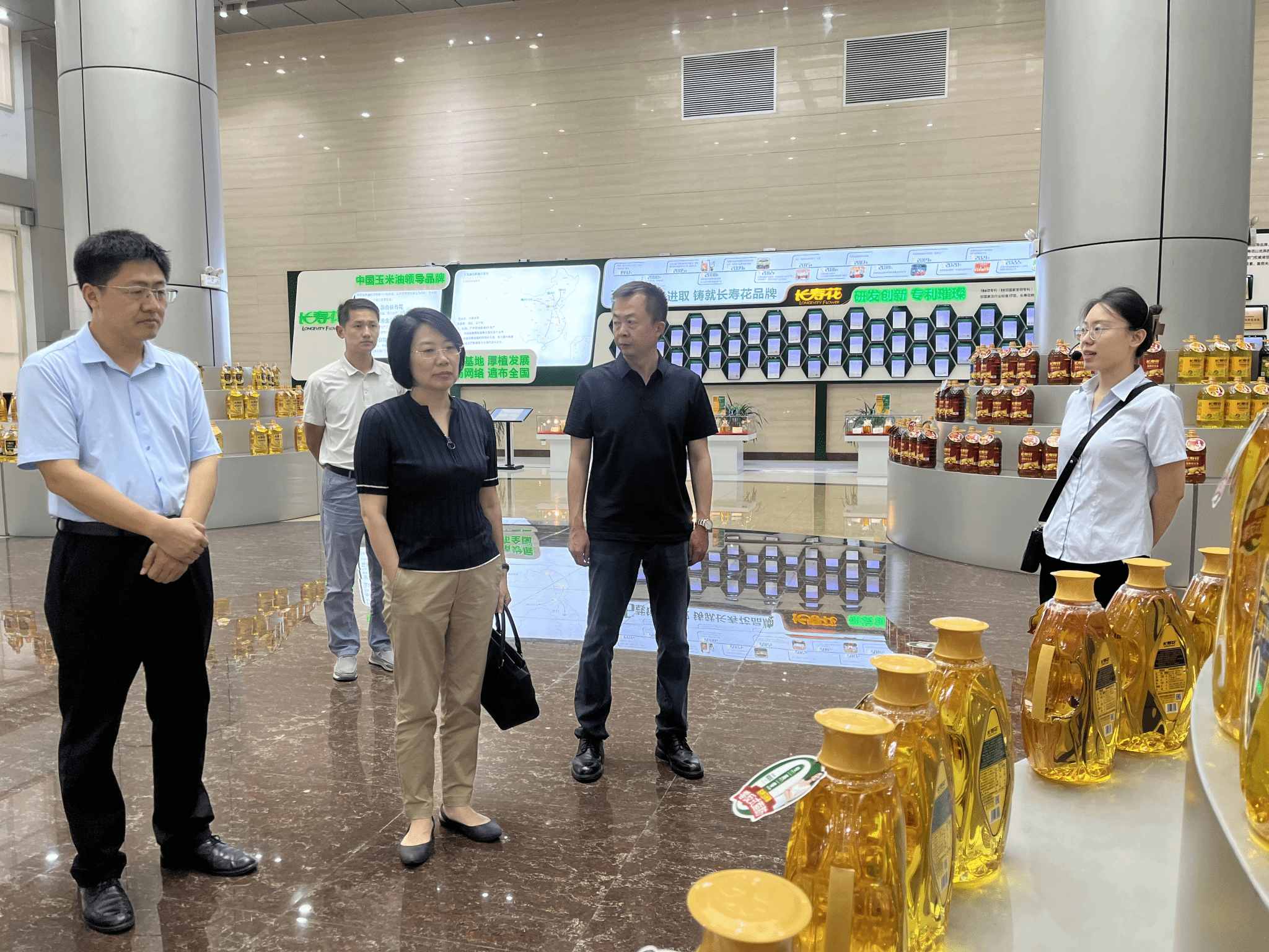 6月26日下午,学校一行来到邹平市长寿花食品股份有限公司,实地参观了长寿花产品展厅、智能化灌装包装车间等,详细了解了企业产业布局、生产经营、技术研发、品牌拓展等情况。公司玉米油产能规模、品牌和市场占有率均处于国内领先地位,近年来不断增扩产品矩阵,搭建线上线下融合销售渠道,实现高端、智能、数字化产销模式,推出的甘油二酯食用玉米油等多款高附加值产品,极大程度上拉升了国内高端粮油制取工艺及产品质量。企业负责人在座谈时表示,如今工厂智能化设备与自动化生产流程对学生的专业技能和复合型知识储备提出了更高要求,对学校的人才培养模式和教学模式也提出了更高挑战,企业最看重也最需要的是吃苦耐劳、踏实肯干的员工和素质,学校应进一步加强学生劳动素养、工匠精神的培养。双方对于在学校数字商务实训中心引入企业产品进行电商直播事项,以及针对企业营销、质检、品控等岗位开展订单培养达成初步意向。