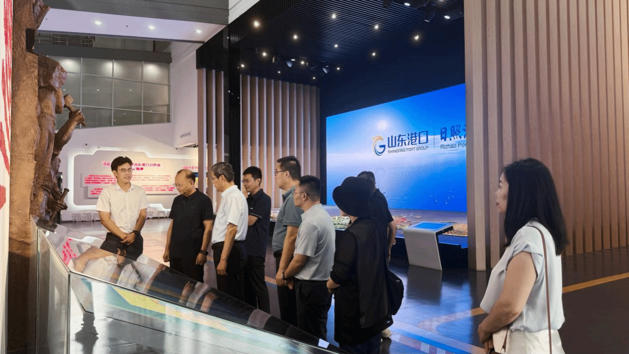 当天下午,调研团队走访山东港口日照港集团有限公司,在日照港监事会主席锁旭升、党群办公室主任陈祥政等相关负责同志陪同下,考察了我校艺术设计学院服务日照港集团“粮食基地”筒仓形象创意设计与绘制项目、智能化粮食基地建设、“海上运输粮仓”战略的新成果。参观了全国首座港口主题综合性展览馆,感受日照港集团在产业融合、艺术赋能、科技创新与绿色转型领域的成功实践。锁旭升强调:“通过艺术赋能,我们让冰冷的工业设施成为传播港口文化的载体,企校融合,为高校学生提供实践平台,实现社会效益与经济效益双赢。”校企双方围绕“产业需求导向、创新技术赋能、文化品牌塑造”三大核心,构建“项目共建、人才共育、成果共享”的协同发展模式,通过“艺术+科技+产业”深度融合,探索出一条校企合作新路径。