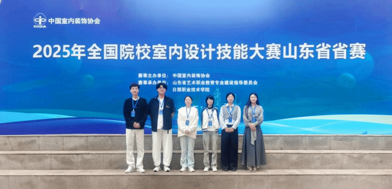 本站讯 近日,2025年全国院校室内设计职业技能大赛山东省省赛圆满落幕。由艺术设计学院张信超、孙杨静担任指导教师,尹佳妮和乔佳慧同学组成的参赛队荣获省赛第六名,孙照松和赵常蕾同学组成的参赛队荣获省赛第七名,两支队伍均获得省级二等奖的优异成绩。