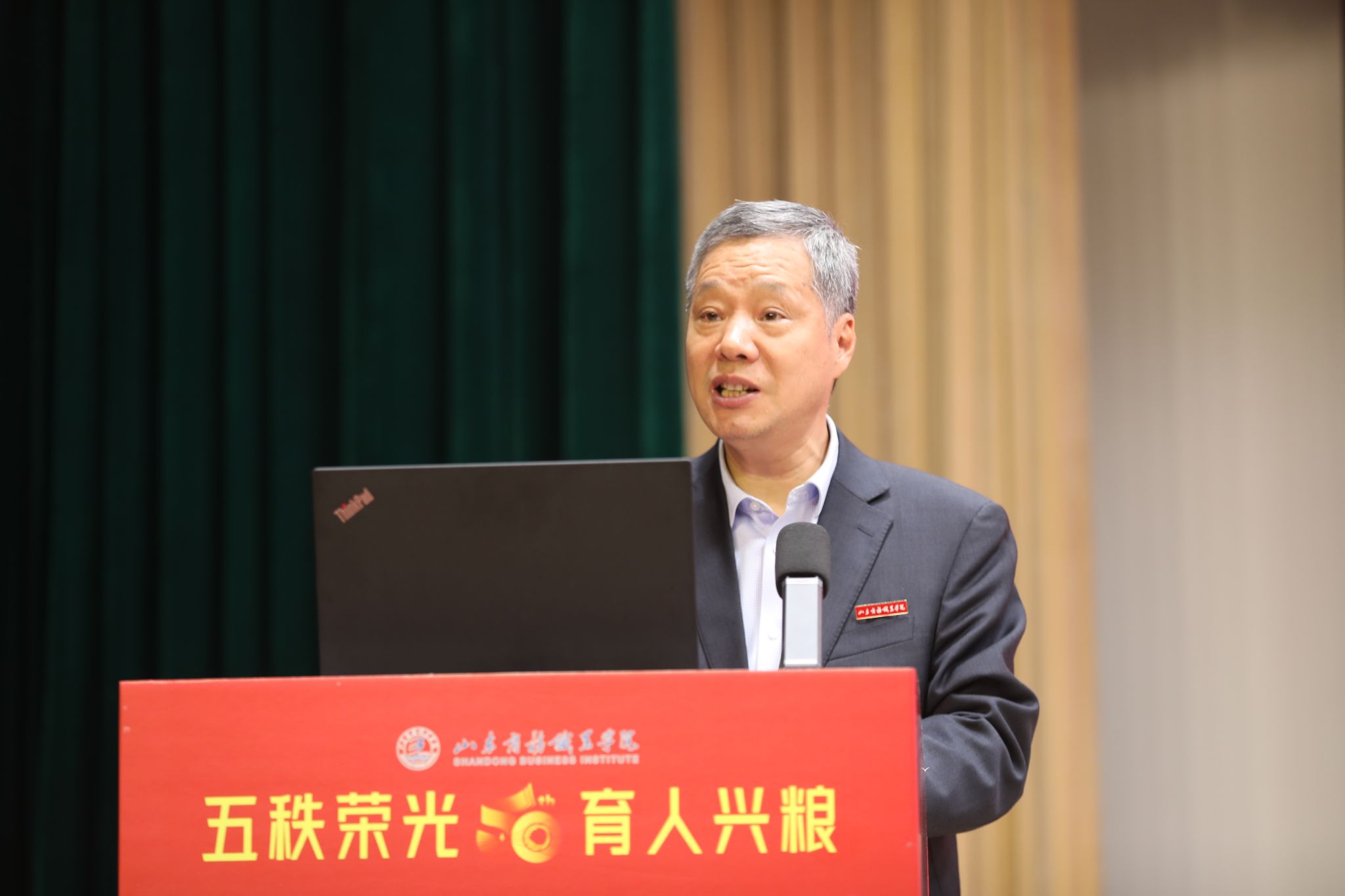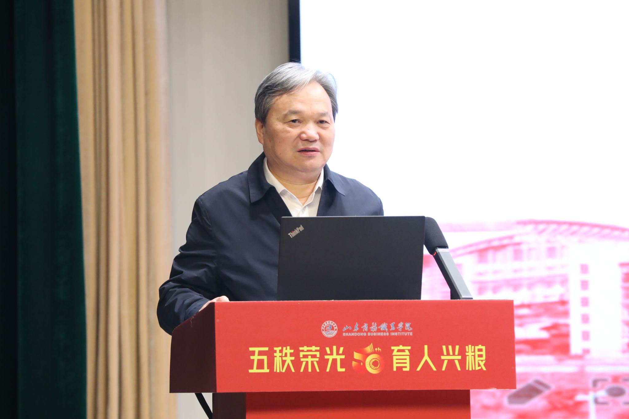 本站讯 10月18日,我校建校50周年高质量发展学术报告会在学校音乐厅隆重举行。本次报告会特邀全国高职高专校长联席会议荣誉主席、天津职业大学原校长董刚教授,中国高等教育学会职业技术教育分会理事长、浙江金融职业学院原党委书记周建松教授,山东商务职业学院党委委员、副校长于邢香教授,为全校师生带来三场高水准学术盛宴。报告会由学校党委副书记、校长王发明主持。