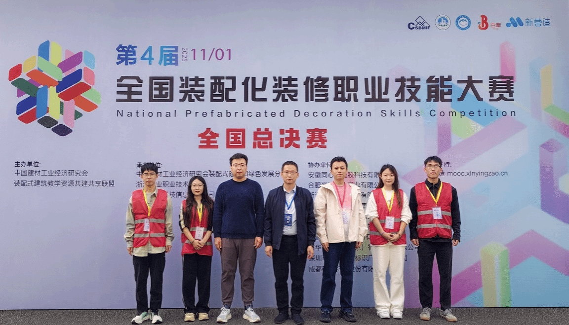 本站讯 11月1日,第四届全国装配化装修职业技能竞赛全国总决赛在浙江工业职业技术学院(浙江绍兴)落幕。我校建筑工程学院钟宁、胡茹茹老师指导的建筑装饰工程技术专业参赛队,从全国百余支优秀队伍中突围,最终荣获全国二等奖。此次获奖不仅是对参赛师生专业能力的高度认可,更充分彰显我校在建筑装饰前沿领域的人才培养硬实力,为学校职业技能竞赛成果再添重要一笔。