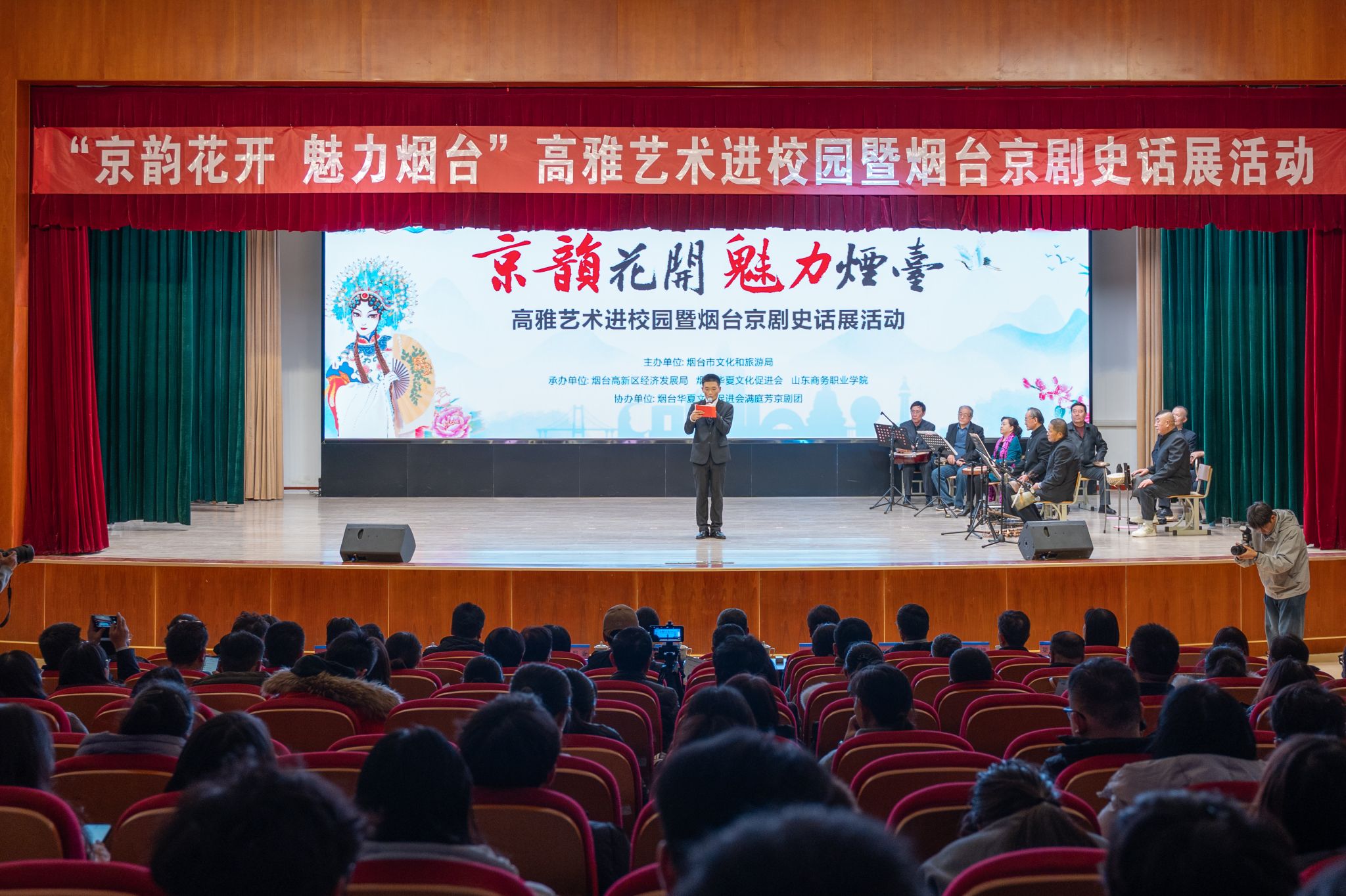 本站讯 为深入推进烟台全民美育工程,丰富群众精神文化生活,提升市民文化获得感与幸福感。11月28日,“京韵花开·魅力烟台”高雅艺术进校园暨烟台京剧史话展活动在我校音乐厅举办。烟台市司法局原党组书记、局长,二级巡视员,鲁东大学硕士研究生导师时光,烟台市委宣传部精神文明科科长曹磊,烟台高新区经济发展局副局长杨国华,我校党委书记孙云茂等领导出席活动,600余名师生共同观看演出。