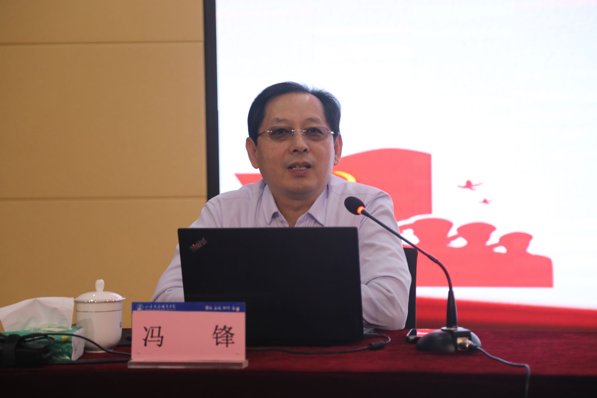 魏才奎首先代表学校对冯锋的到来表示热烈欢迎,并详细介绍了其学术背景与研究成果。冯锋深耕马克思主义中国化及国家治理现代化研究领域,学术造诣深厚,成果丰硕,不仅担任多所高校客座教授,还多次入选省社科理论人才“百人工程”,作为省委讲师团政治、党建类宣讲专家,具备丰富的理论宣讲经验。