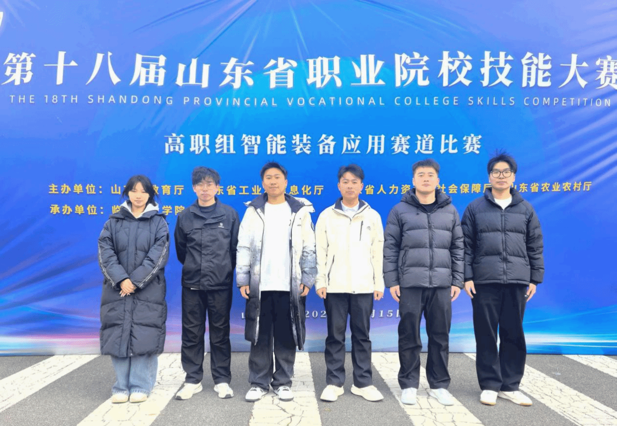 本站讯 12月18日—19日,第十八届山东省职业院校技能大赛高职组“智能装备应用”赛道比赛在临沂职业学院举办。我校智能制造学院学生王德众、胡少帆、李兴瑞、高昆、王兆辉、栾欣颖组成的参赛团队,在张雁涛、姚春玲两位老师的指导下,凭借扎实的专业功底、默契的团队协作与出色的临场应变能力,以小组赛第2名的成绩荣获该赛道二等奖。