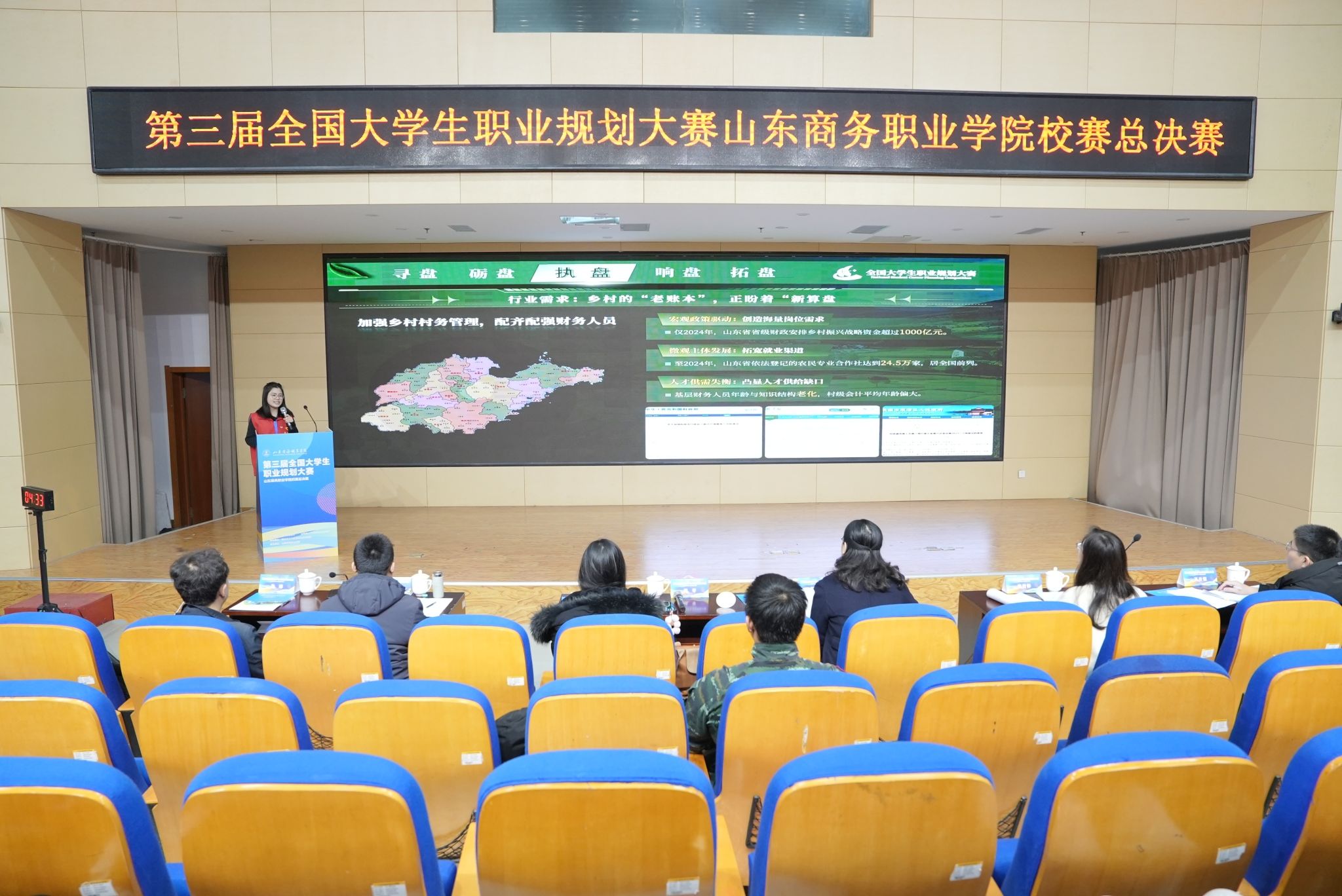 本站讯 12月23日,我校第三届全国大学生职业规划大赛校赛决赛在党性教育基地圆满落幕,本次大赛以“规划职业之路,成就精彩人生”为核心,旨在为全校学子搭建展示自我、明确方向、提升能力的优质平台,助力我校学子在成长道路上锚定职业坐标,在青春赛道上书写奋进篇章。校企合作与就业工作处处长、各二级学院就业辅导员、指导老师及在校学生现场观看了本场比赛。