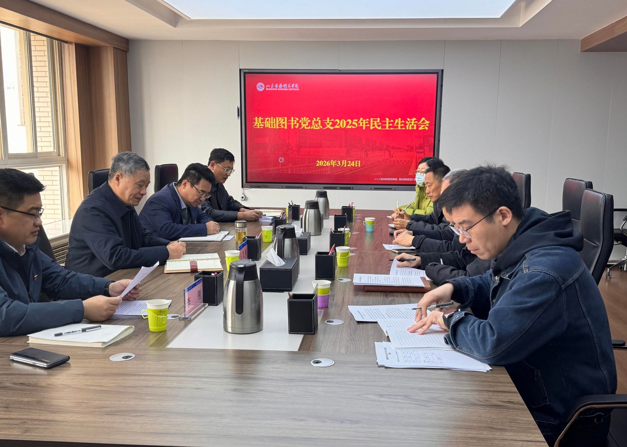 会前,基础图书党总支严格对标学校要求,制定了2025年度民主生活会方案,班子成员通过个人自学与集中研讨相结合的方式,深入开展理论学习,通过多种渠道广泛征求师生意见建议,深入开展谈心谈话,全面梳理检视问题,认真撰写对照检查材料,做了充分细致的准备工作,为高质量开好民主生活会打下坚实基础。