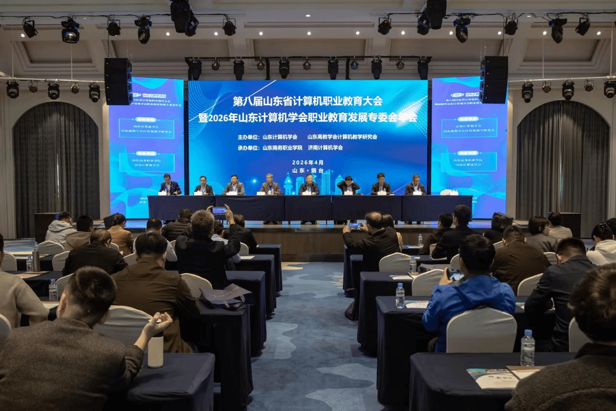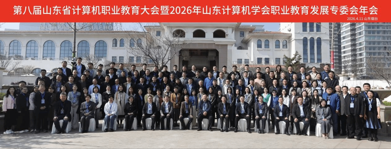 本站讯 由山东计算机学会、山东高教学会计算机教学研究会主办,我校和济南计算机学会承办的第八届山东省计算机职业教育大会暨2026年山东计算机学会职业教育发展专业委员会年会,于4月10日至12日在烟台召开。来自全省各职业院校、企业的150余名专家学者、一线教师及行业代表齐聚一堂,围绕信息技术人才培养新路径、职业教育高质量发展新方向,开展深入交流,凝聚发展共识。山东计算机学会执行副理事长、山东高教学会计算机教学研究会理事长、山东计算机学会职业教育发展专委会名誉主任委员、山东大学教授石冰;山东计算机学会职业教育发展专委会主任委员、山东商业职业技术学院党委副书记、校长张宗国;我校党委副书记、校长王发明;烟台幼儿师范高等专科学校党委委员、副校长崔玉礼;莱芜职业技术学院党委委员、副校长任清华;国家“双高计划”等政策文件研制人李俊雅;智能体技术应用国家专业标准牵头人杨忠明等出席会议。