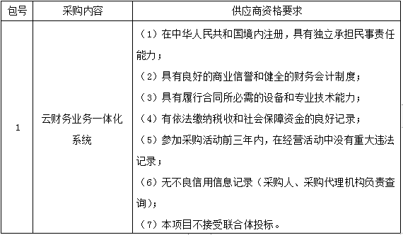 一、采购项目名称:云财务业务一体化系统