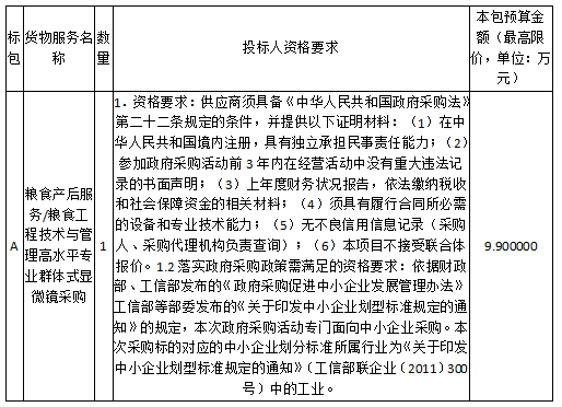 二、采购项目名称:粮食产后服务/粮食工程技术与管理高水平专业群体式显微镜采购