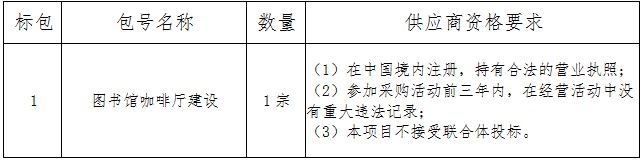 二、采购项目名称:图书馆咖啡厅建设