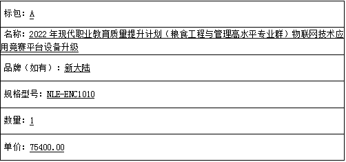 二、项目名称:2022年现代职业教育质量提升计划(粮食工程与管理高水平专业群)物联网技术应用竞赛平台设备升级