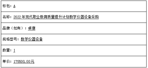 二、项目名称:2022年现代职业教育质量提升计划教学仪器设备采购