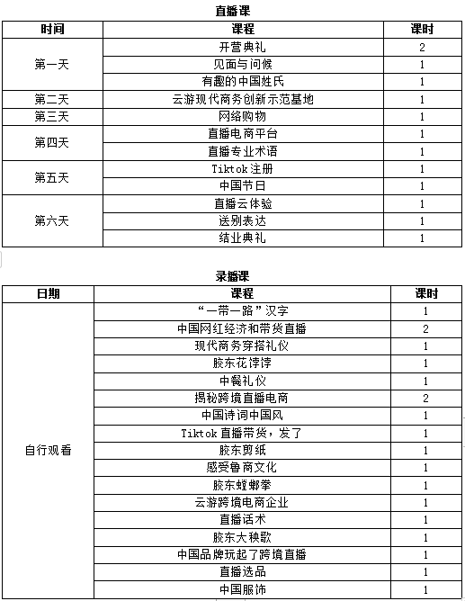 山东商务职业学院位于中国的海滨城市—烟台,成立于1975年,是一所开放型、多学科、技能型的高等职业学校。“踏上‘汉语桥’,开启直播带货之旅”是我校承办的2022年汉语桥线上团组交流项目。本项目主要内容是以“中文+直播带货技能”为主线,采用”语言文化学习+主题讲座+技能操作演示+云端参访+案例研讨“的方式,融语言文化学习、活动交流、直播带货技能培养为一体,旨在通过汉语教学,以直播课程、录播课程、线上体验等学习形式,满足外籍人士学习汉语、体验中国传统文化、掌握直播带货知识和常用技能的需求。本项目是免费的。完成所有课程后,学生将能够获得结业证书。
