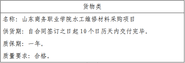 二、项目名称:山东商务职业学院水工维修材料采购项目