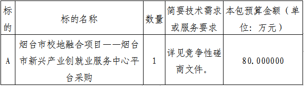 项目名称:烟台市校地融合项目——烟台市新兴产业创就业服务中心平台采购