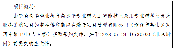 项目名称:山东省高等职业教育高水平专业群人工智能技术应用专业群教材开发服务