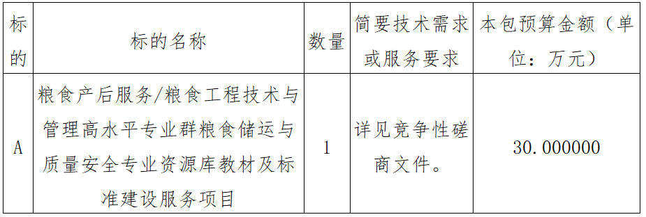 项目名称:粮食产后服务/粮食工程技术与管理高水平专业群粮食储运与质量安全专业资源库教材及标准建设服务项目