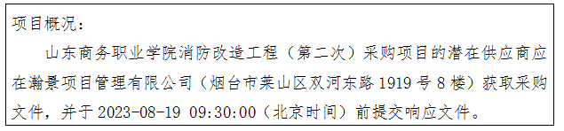 项目名称:山东商务职业学院消防改造工程(第二次)
