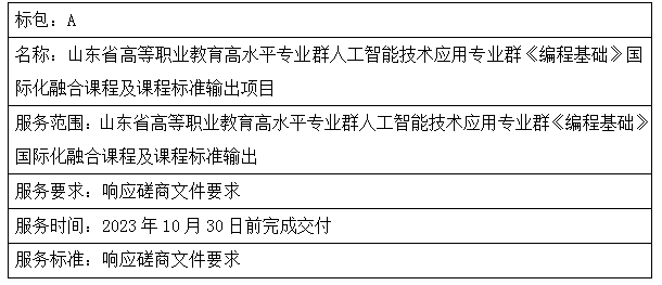 二、项目名称:山东省高等职业教育高水平专业群人工智能技术应用专业群《编程基础》国际化融合课程及课程标准输出项目