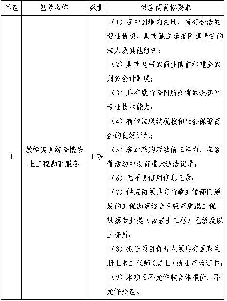 二、采购项目名称:教学实训综合楼岩土工程勘察服务