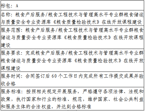 二、项目名称:粮食产后服务/粮食工程技术与管理高水平专业群粮食储运与质量安全专业资源库《粮食质量检验技术》在线开放课程建设