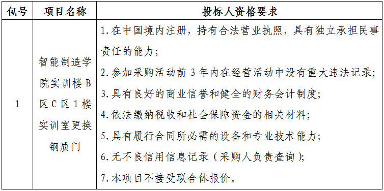 采购内容:智能制造学院实训楼B区C区1楼实训室更换钢质门;本项目划分一个包;