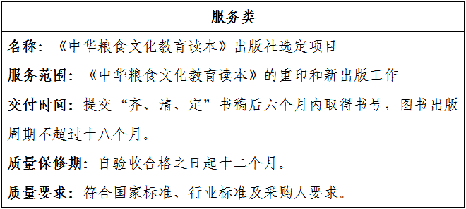二、项目名称:《中华粮食文化教育读本》出版社选定项目