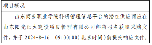 报名方式:电子邮箱报名:须将加盖单位公章的营业执照(或事业单位法人证书等相关证明材料)、汇款证明(开户名称:山东阳光正大建设项目管理有限公司烟台分公司,开户银行:恒丰银行股份有限公司烟台上夼西路支行,账号:853540120122703359,对公转账,不接受个人转账打款)、所报项目名称、项目编号、项目联系人、联系方式发送至邮箱sdygzdyt@163.com。