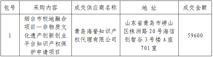 二、采购项目名称:烟台市校地融合项目-非物质文化遗产创新创业平台知识产权保护申请项目