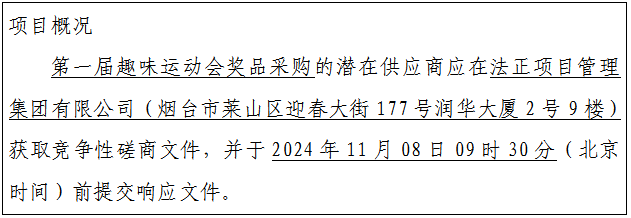 4.采购需求:本项目为第一届趣味运动会奖品采购,按1个包进行采购,采购预算为60000.00元。具体采购需求详见竞争性磋商文件。