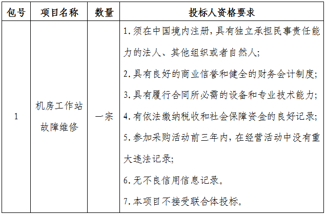 采购内容:机房工作站故障维修;本项目划分一个包;
