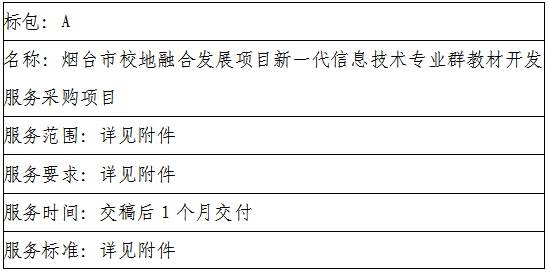 二、项目名称:烟台市校地融合发展项目新一代信息技术专业群教材开发服务采购项目
