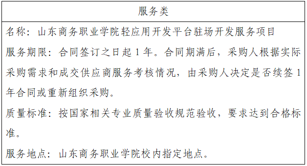 二、项目名称:山东商务职业学院轻应用开发平台驻场开发服务项目