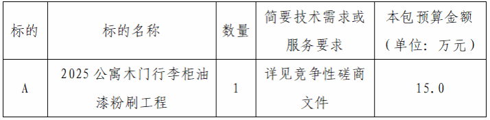 2025公寓木门行李柜油漆粉刷工程采购项目的潜在供应商应在烟台市莱山区观海路267号观海大厦B座5楼获取采购文件,并于2025-06-24 09:00:00(北京时间)前提交响应文件。