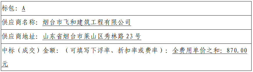 标包A:烟台市飞和建筑工程有限公司(89.5、90.0、90.0)、烟台永盛建筑开发有限公司(79.83、82.33、84.33)、烟台迪元置业有限公司(75.29、75.79、81.29)