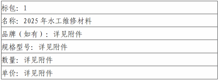 二、项目名称:2025年水工维修材料