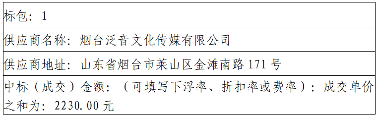 标包A:烟台泛音文化传媒有限公司(95.06、95.56、95.56)、烟台市蓬华节能科技有限公司(95.04、95.54、92.54)、山东屹海贸易有限公司(90.78、92.78、90.28)、烟台智安电子有限公司(88.12、87.62、85.62)